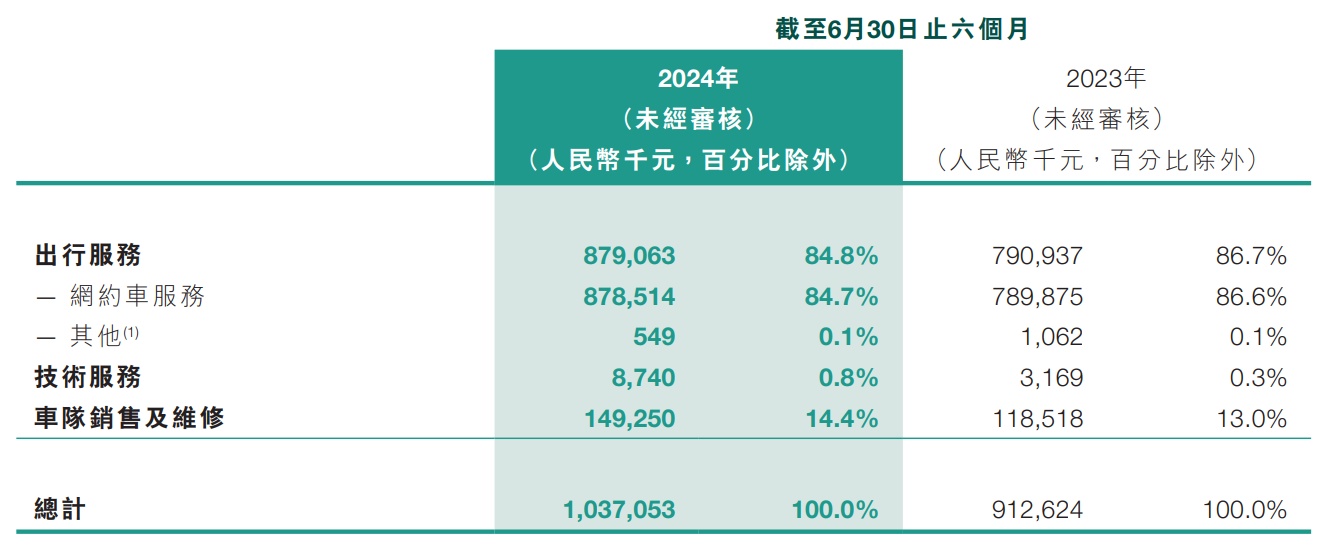 进入2024年上半年,订单量增长带动出行服务收入增长11.1%,再加上技术服务、车队销售及维修服务的持续放量,如祺出行报告期内的总收入为10.37亿元,同比增长13.6%,保持了收入端的持续成长。