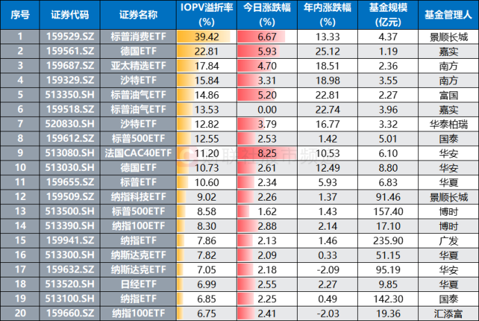 注:标普消费ETF近期溢价率数据变动(截至1月16日收盘)