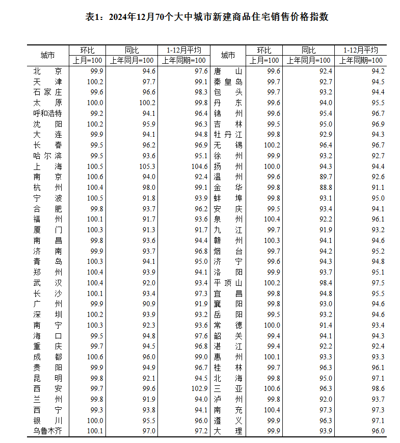 ——国家统计局城市司首席统计师王中华解读2024年12月份商品住宅销售价格变动情况统计数据