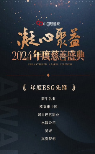 近日,由《中国慈善家》杂志举办的“凝心聚益2024年度慈善盛典”在北京举行,盛典现场揭晓了年度榜样机构、年度优秀项目、年度优秀传播案例、年度责任品牌以及年度ESG先锋五大奖项。水滴公司凭借在ESG领域的深耕与成绩荣获“年度ESG先锋”奖项。