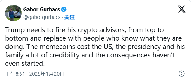 古尔巴奇在X上发布的一份帖子中表示,这些meme加密货币大量发行的最终后果“甚至还没有开始显现”,并呼吁特朗普解雇他的私人加密货币顾问。