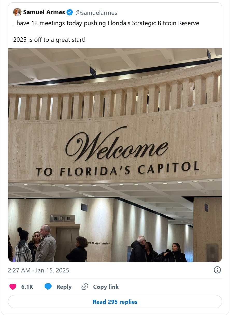 尽管如此,佛罗里达州等加密货币友好州也在即将召开的立法会议上重新调整了优先事项,将创建比特币战略储备列为首要议程。佛罗里达州区块链商业协会主席塞缪尔·阿姆斯(Samuel Armes)表示:“如果卡玛拉·哈里斯获胜,我们将采取防御姿态,确保加密货币不会从美国流出。但现在我们可以尽可能地向前看,看看如何让州政府加倍投入并开始投资这些资产。”
