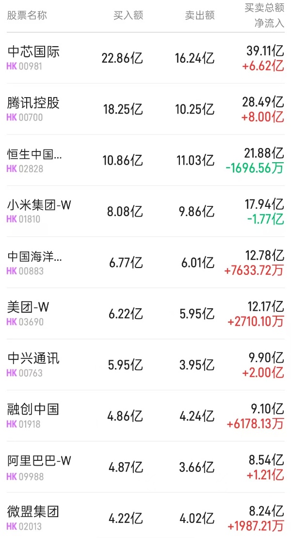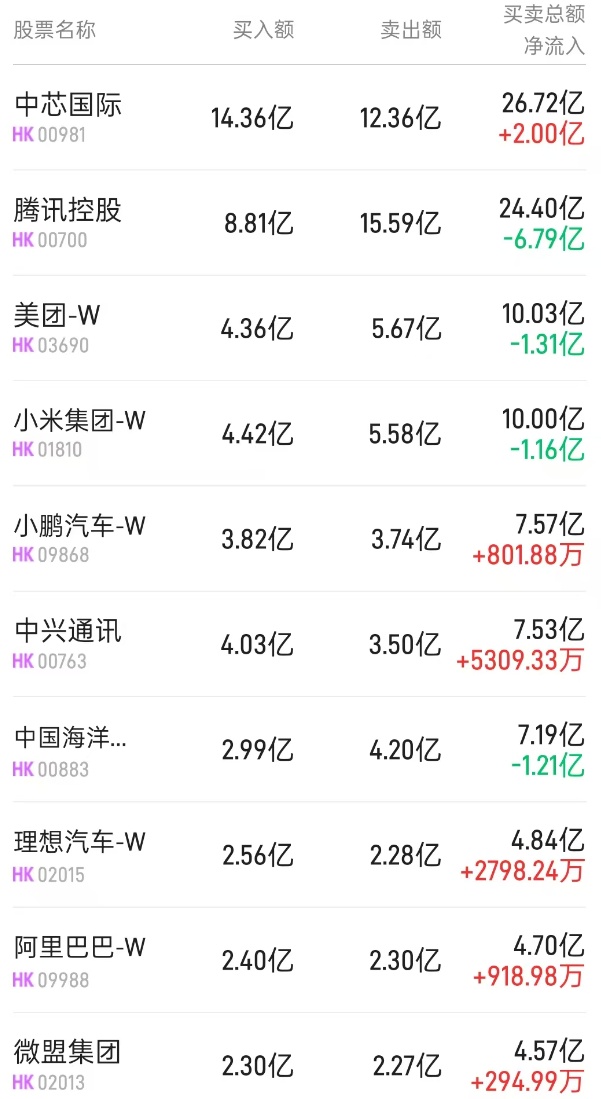 中兴通讯(00763)获净买入2.53亿港元。消息面上,国金证券指出,在禁令加剧以及国内以字节为首的互联网厂商大规模建设算力的背景下,预计2025年国产算力将大规模起量,直接利好高新发展、中兴通讯、紫光股份等国产芯片服务器代工企业。此外,中兴微电子从通信领域的定制处理器逐步发展到计算通用化+加速器领域定制的算力芯片,覆盖多种规格和应用。自研珠峰芯片与定海芯片,提供高性能、多样化的算力加速硬件。自研芯片业务为公司估值抬升提供动力,成长空间打开。