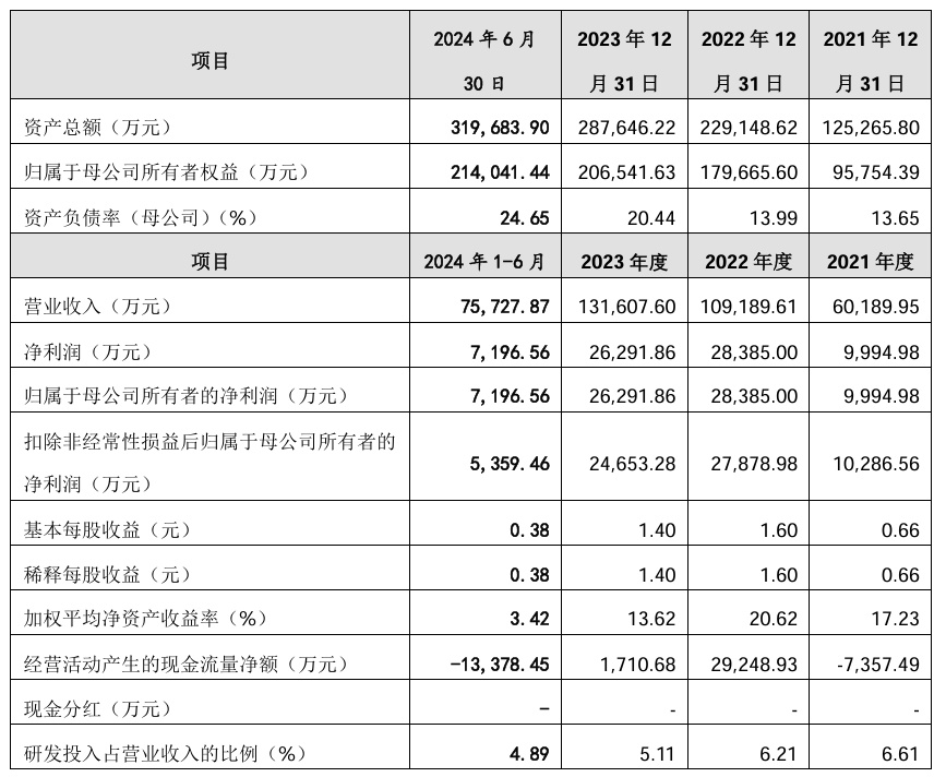 财务方面,于2021年、2022年、2023年、2024年1-6月,盾源聚芯实现营业收入分别约为6.02亿元、10.92亿元、13.16亿元、7.57亿元人民币;同期,该公司实现净利润分别为9994.98万元、2.84亿元、2.63亿元、7196.56万元人民币。