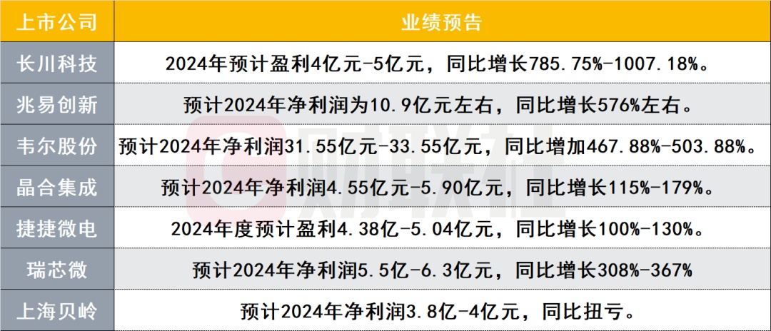 从以上公司披露的业绩预增原因来看,主要受益于半导体行业的复苏和市场需求回暖的影响。