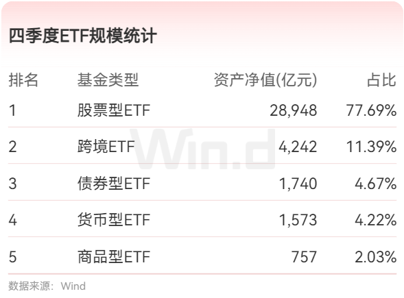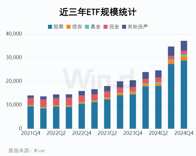 2024年四季度,ETF规模再创新高,达3.73万亿元。非货币ETF规模达3.57万亿元。