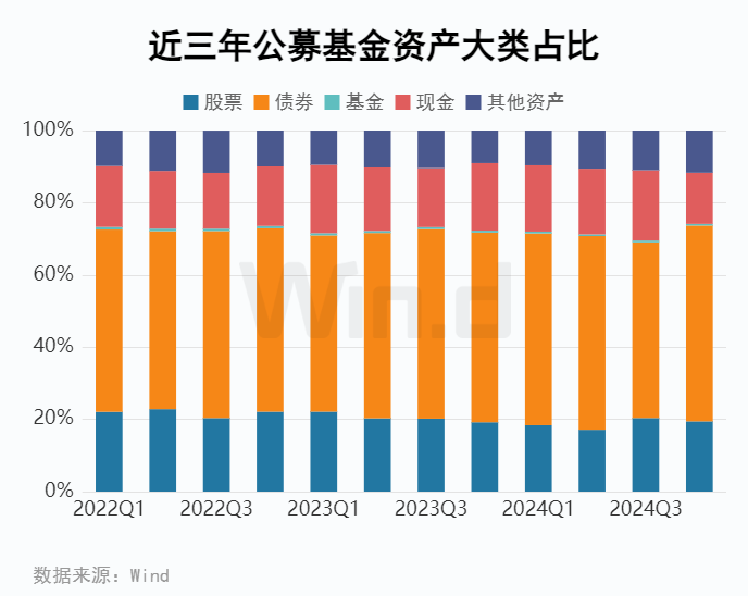 2024年四季度,债券类资产占比上升至54.21%,股票类资产占比下降至19.46%。