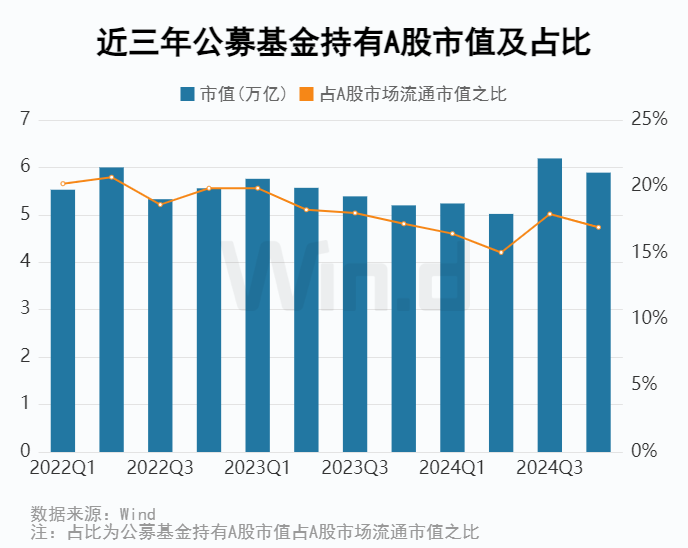 四季度,公募基金持有A股市值为5.89万亿元,占A股流通市值比为16.92%。