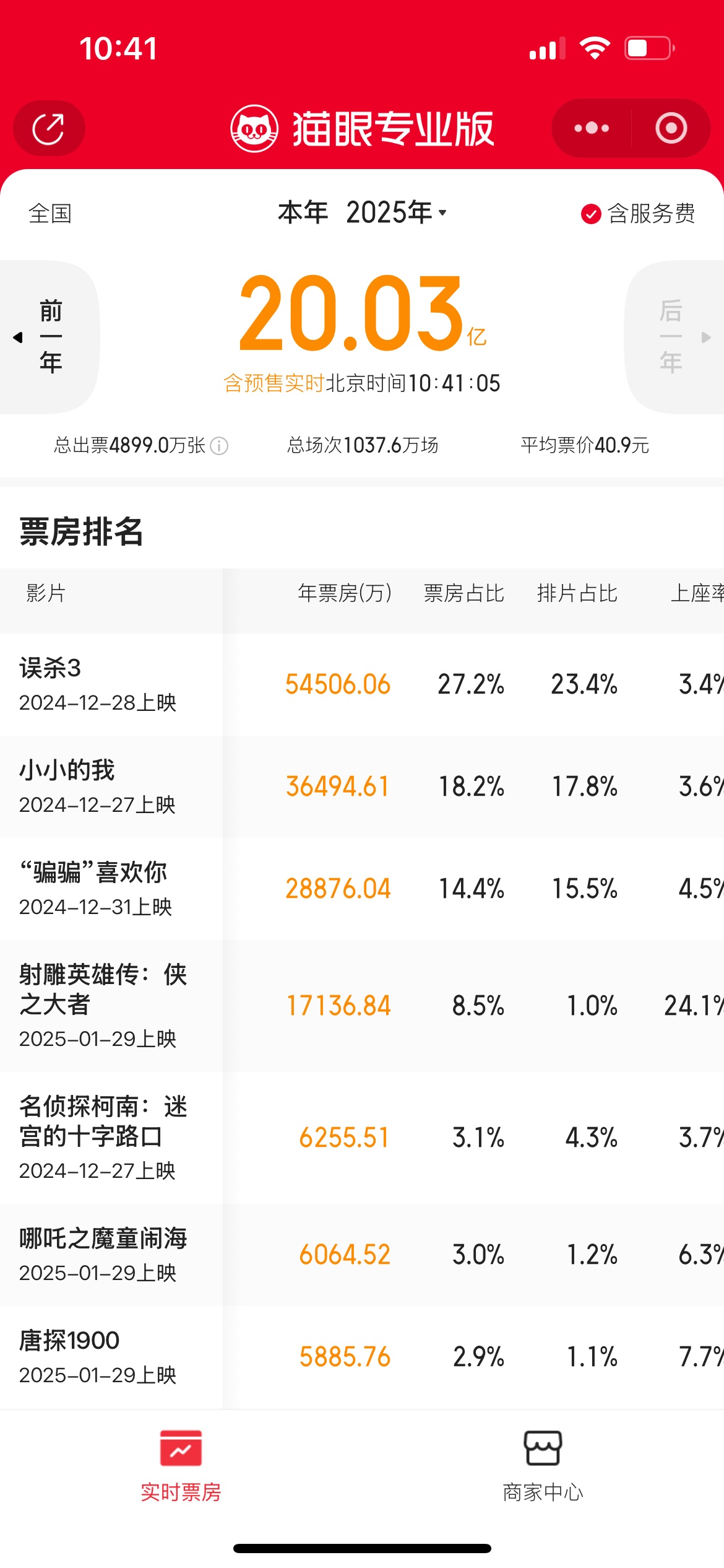 智通财经APP获悉,据猫眼专业版数据,2025年1月23日09时42分,2025年度票房(含预售实时)破20亿元。