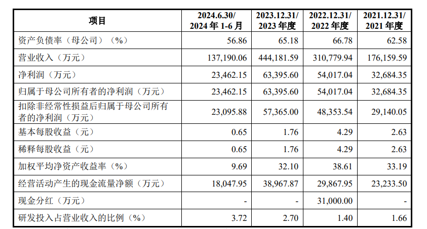 财务方面,于2021年度、2022年度、2023年度、2024年1-6月,德力佳分别实现营收约为17.62亿元、31.08亿元、44.42亿元、13.72亿元人民币;同期,净利润分别约为3.27亿元、5.40亿元、6.34亿元、2.35亿元人民币。