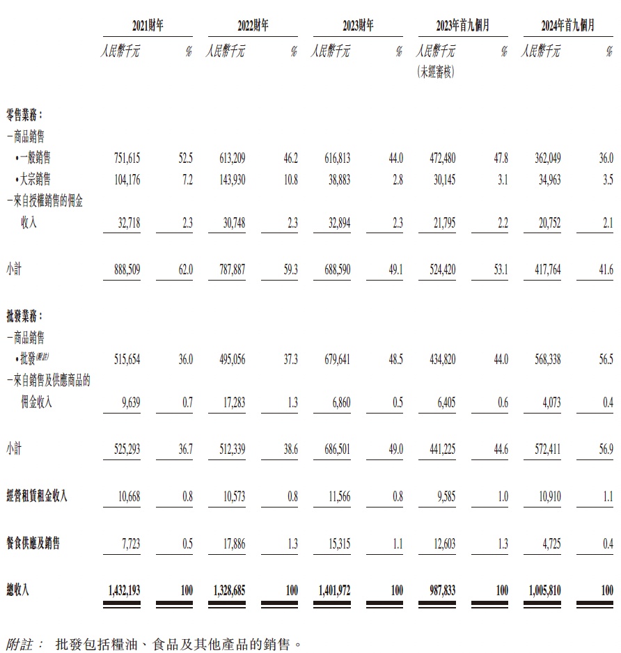 透过核心财务数据的既往表现不难看出,宏信龙的基本面属于稳健有余但成长性不足。而若归根溯源,这或许与公司的业务情况有较大关联。拆分结构看,宏信龙的收入主要由零售业务、批发业务、经营租赁租金收入,以及餐食供应及销售四大板块贡献。其中,后两者的业务规模均较小,因此,宏信龙的绝大部分收入均来源于零售业务和批发业务。