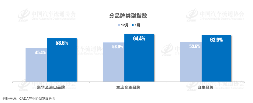 从分品牌类型指数看:1月豪华及进口、合资、自主品牌指数环比上升。