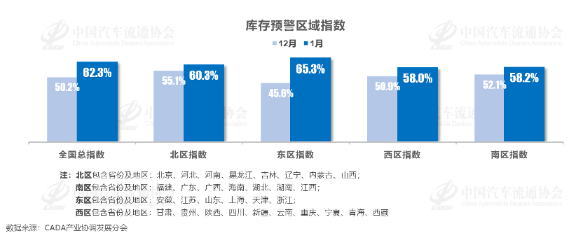 从区域指数情况看:1月全国总指数为62.3%,北区指数为60.3%,东区指数为65.3%,西区指数为58.0%,南区指数为58.2%。