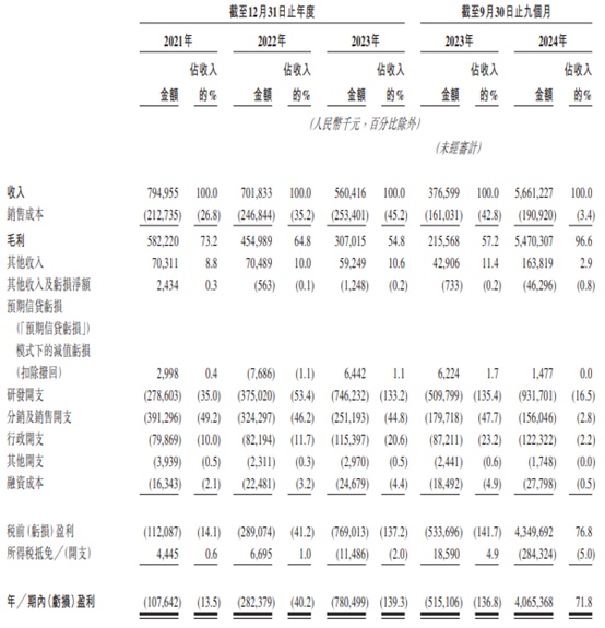不仅如此,由于现阶段公司的业务重点转为发现和开发创新药物,为此已导致大量研发开支, 2021-2023年及2024前三季度公司的研发开支分别达到2.78亿元、3.75亿元、7.46亿元及9.32亿元,同期内用于创新药物候选产品的研发开支分别占总研发开支的71.5%、85.9%、92.9%及96.3%。