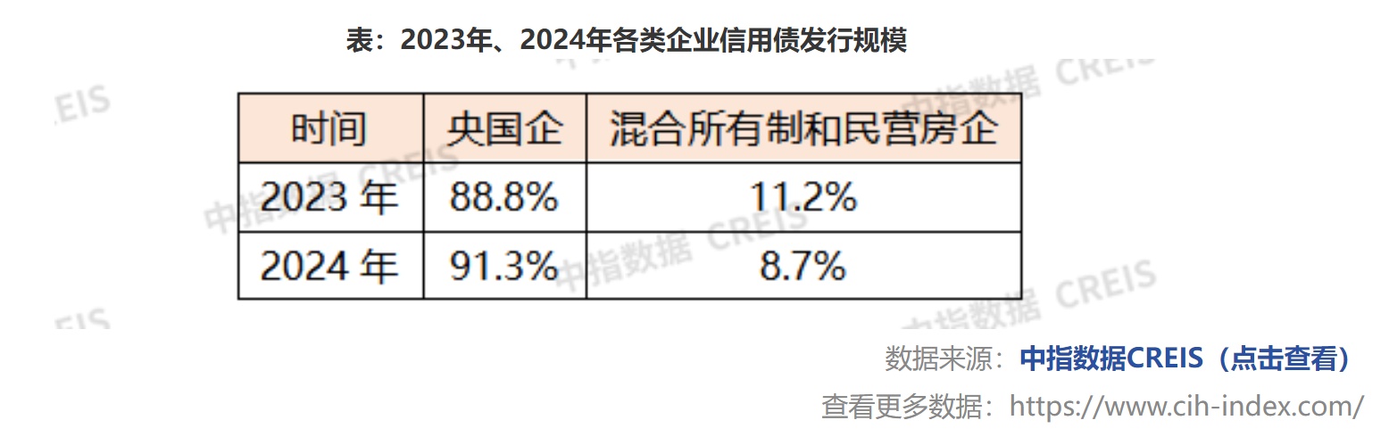 从发行结构来看,信用债的发行主体以央企、地方国企为主,年内央国企发行占比已超90%,较上年上升2.5个百分点;民企和混合所有制企业发行占比下降。2024年,民企发债仍保持低水平,从发行企业来看,2024年发债民企和混合所有制企业为8家,较上年有所减少,基本是规模较大尚未出险的企业,难以惠及多数资金面紧张的民企。