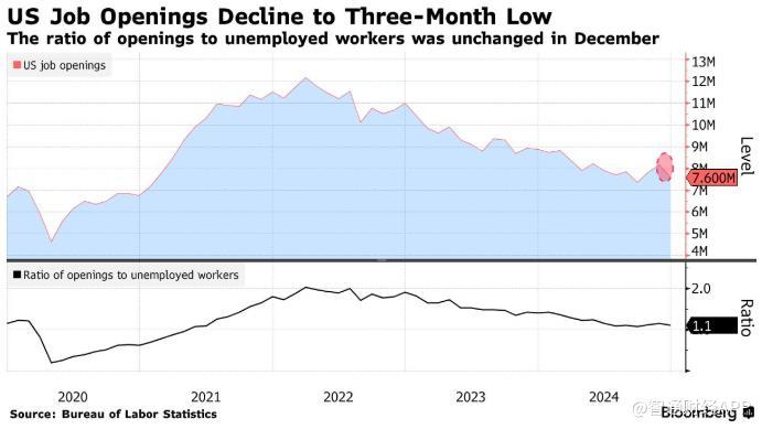 总体来看,12月职位空缺的下降进一步表明美国劳动力市场正逐步降温,这可能会影响美联储未来的货币政策决策。然而,由于不同指标显示的趋势存在分歧,市场仍需关注后续就业数据,以更准确评估劳动力市场的真实状况。