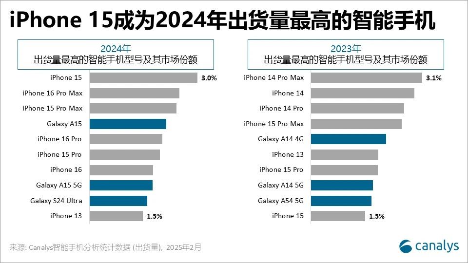 Canalys高级分析师Sanyam Chaurasia表示:“在旗舰机高需求的推动下,苹果和三星依然保持韧性,反映出市场持续高端化的趋势。在高端市场,消费者越来越倾向于选择旗舰系列中的高端版本,这得益于厂商在旗舰系列中提供更清晰的产品区分,同时这一市场本身对价格的敏感度较低。