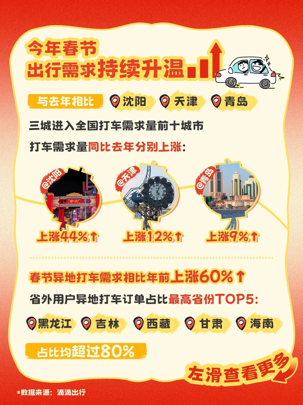 智通财经APP获悉,滴滴出行数据显示,在“回家”和“出游”带动下,春节打车完单量同比去年上涨17%,异地打车需求相比年前上涨60%;随着多部春节档影片上映,