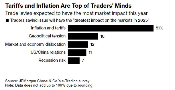 该年度交易调查指出,2025年,通胀和关税将对市场产生最大影响,其次是地缘政治紧张局势。约41%的受访者将波动性列为其日常交易中的最大预期挑战,高于上年的28%。