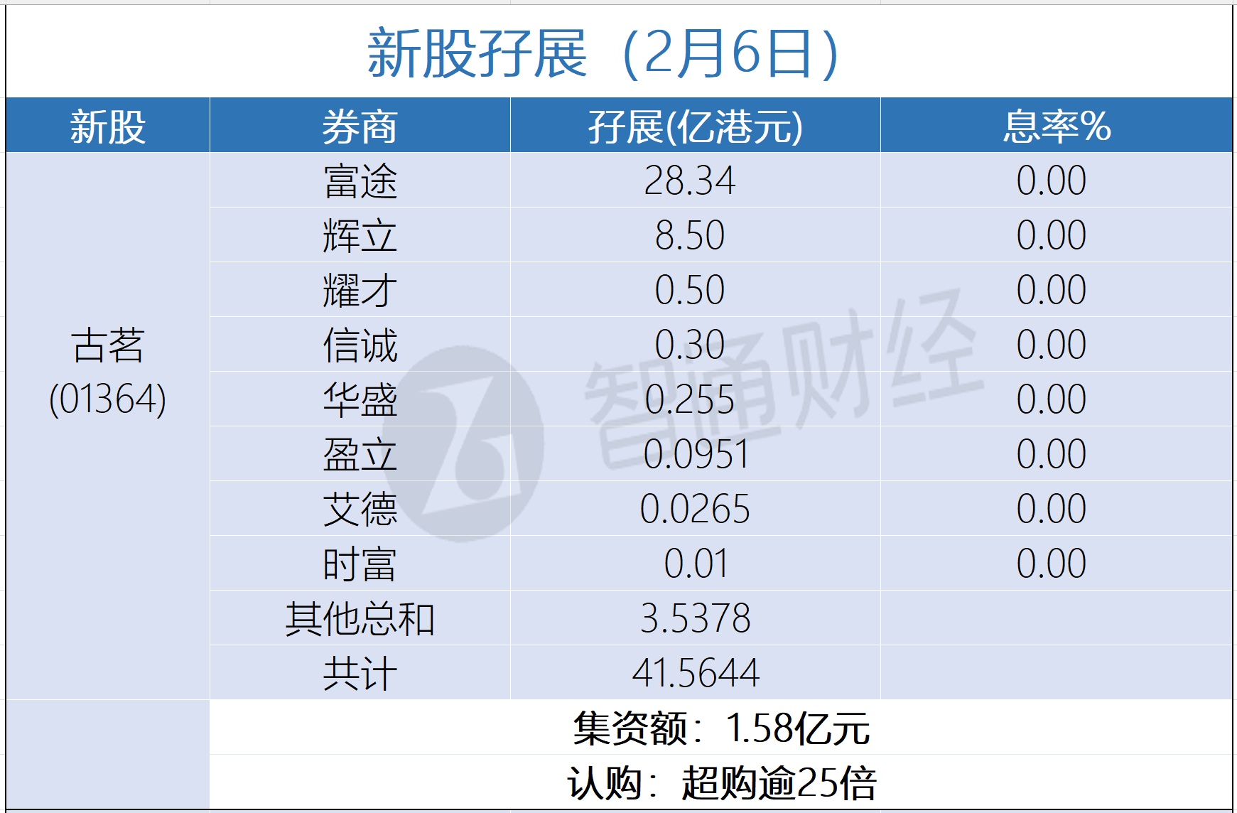 智通财经APP获悉,古茗(01364)正在招股中。截止2月6日,富途、耀才、辉立等券商合计为古茗借出41.5644亿港元,超购逾25倍。