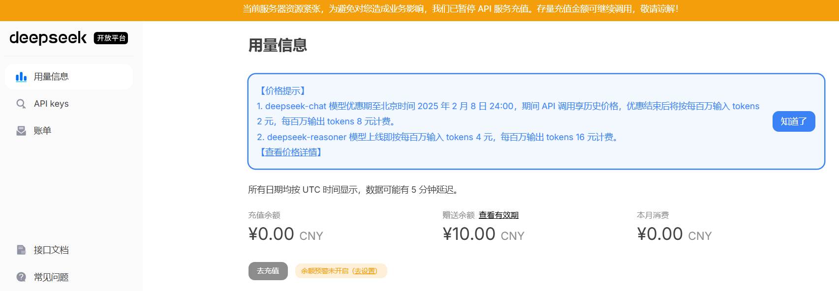 智通财经APP获悉,DeepSeek 已暂停API服务充值。2月6日,DeepSeek开放平台发布官方声明称,“当前服务器资源紧张,为避免对您造成业务影响,我们已暂停API服务充值。存量充值金额可继续调用,敬请谅解!”。