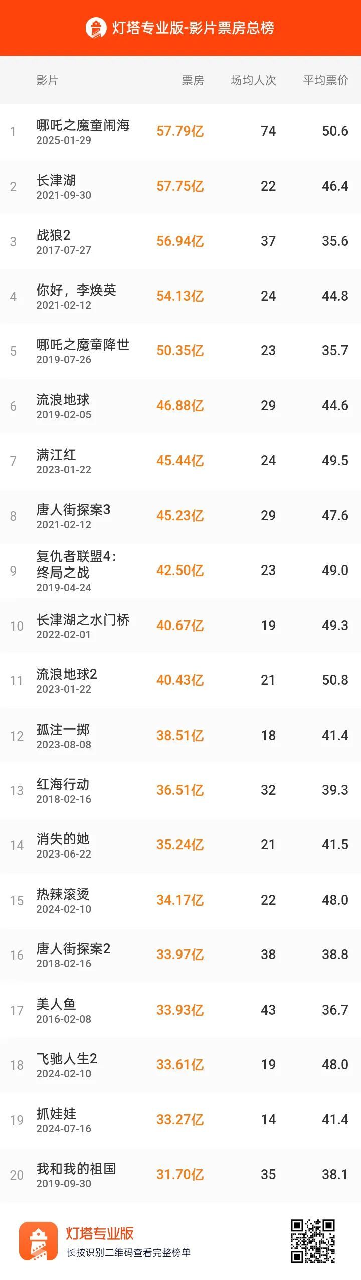 《哪吒之魔童闹海》登顶中国影史票房榜
