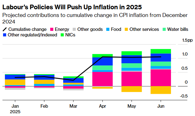 不过,货币政策委员会对利率前景发出了谨慎的信号,暗示只要再降息两次,通胀就会回到央行2%的目标。政策制定者还对财政大臣Rachel Reeves进行了抨击;警告说,通胀率将“相当急剧”上升,今年晚些时候将达到3.7%的峰值,同时降低了经济增长预测。