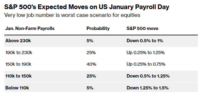 智通财经获悉,摩根大通表示,周五晚些时候将公布的美国1月非农就业数据必须恰到好处——既不太热,也不太冷——美国股市才能继续上涨。Andrew Tyler领导的小摩交易部门表示,如果新增非农就业岗位低于15万,股市就会走低,而如果新增非农就业岗位超过23万,也会给股市带来压力,因为这将增加美联储不得不加息的押注。