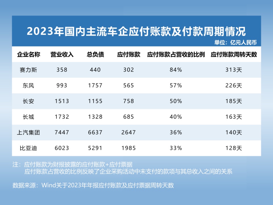 从财报不难看出,海外车企的总负债中更多是有息负债,国内车企更多是无息负债。而在无息负债中,大头是还没到期支付的供应商货款,体现在财报上主要是应付账款。