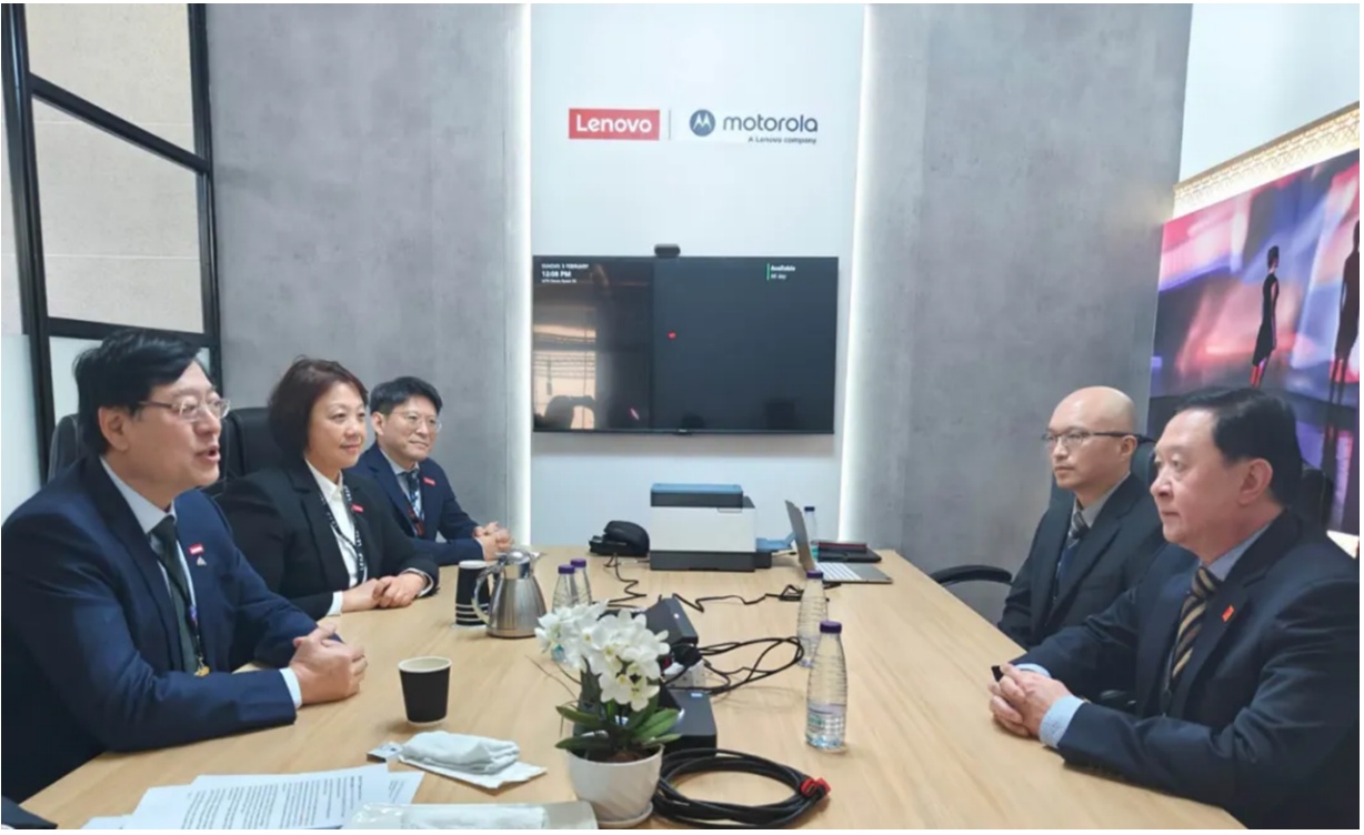智通财经APP获悉,中东地区最大规模的科技盛会沙特阿拉伯电子科技及信息技术展(LEAP)在沙特阿拉伯首都利雅得开幕。全球科技领军企业联想集团(00992)携多项前沿技术成果亮相大会。中国驻沙特大使常华走访了联想集团展台,并与联想集团董事长兼首席执行官杨元庆进行交流。
