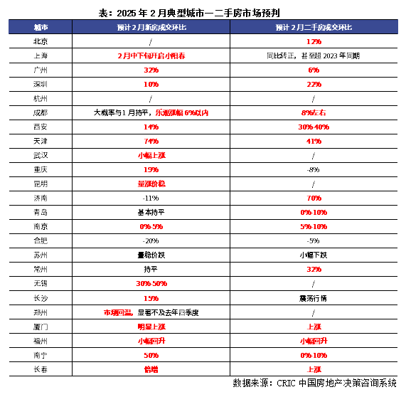 预判:2月供给延续提质缩量 成交同比转正,一线热度持增