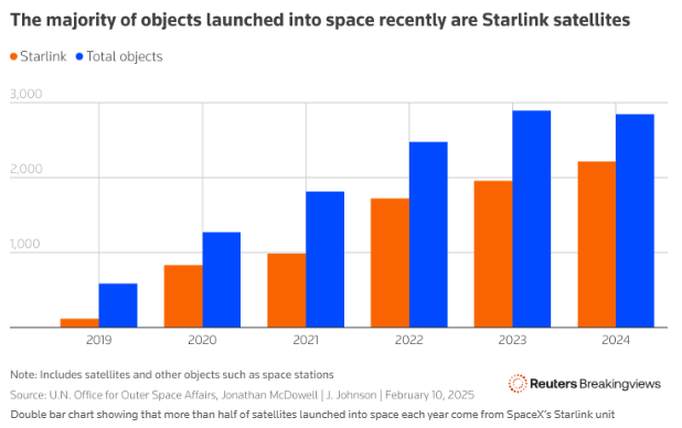 根据哈佛大学天文学家Jonathan McDowell的数据,星链目前已有近7000颗卫星在轨运行,其全球互联网用户数量在2024年翻了一番多,达到460万。作为SpaceX的子公司,星链还表示其太空而非地下光缆或移动网络的互联网流量增长了两倍。据了解,杰夫·贝佐斯的亚马逊(AMZN.US)正试图通过类似的项目Project Kuiper追赶星链。