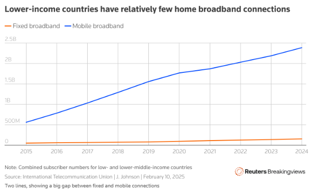 然而,电信行业乐观人士的论点也存在漏洞。首先,他们忽略了全球一些最大的电信市场仍缺乏足够的家庭宽带服务。以印度为例,根据该国电信监管机构的数据,印度仅有4100万固定互联网用户,而无线用户高达9.04亿。换句话说,大多数人依赖移动数据上网,这意味着像星链这样的家庭宽带提供商在市场上存在巨大机会。