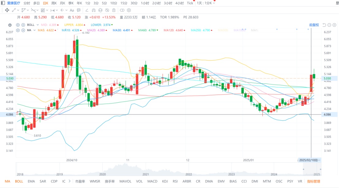 不难看到,2月10日爱康医疗股价收涨13.53%,当日成交量达2233.5万股,显著高于前几个交易日的平均水平,显示市场资金在盈喜公告后积极介入,形成量价齐升的突破形态。