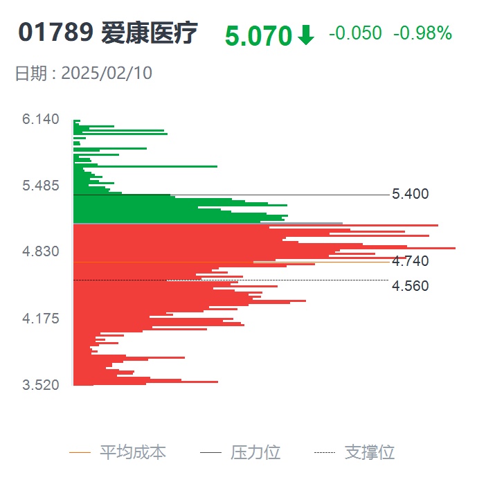 并且在量能表现上,2月10日突破5港元整数关口后,爱康医疗呈现市场成交额激增现象;从均线上看,截至2月10日,爱康医疗以5.12港元收盘价站上5日、10日、20日等短期均线,并远离60日均线,形成典型的多头排列形态,且5日均线(4.75港元)与4.8港元的前期突破位已构成第一支撑,助力短期多头继续上攻。从市场乐观预期来看,爱康医疗当前股价已站上60日均线(4.79港元),若后续站稳该位置,便可能进一步打开上行空间。
