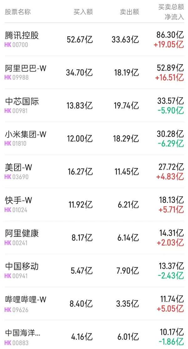 此外,快手-W(01024)、美团-W(03690)分别获净买入9.83亿、8.35亿港元。而中海油(00883)遭净卖出4.12亿港元。