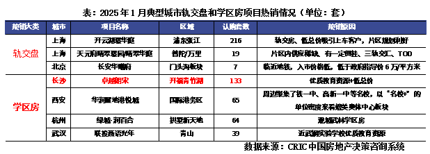除了产品力之外,健全配套设施也是吸引购房者的重要因素之一,尤其是交通便利的轨交盘和具备强教育资源的学区房,也成为当前撬动销量的不二法门。下表我们罗列了1月部分热销的轨交盘和学区房项目,主要是通过优质的交通配套或教育资源获得销售佳绩。