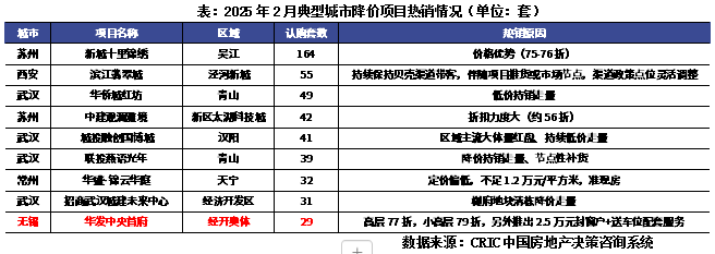三四线以无锡为典型代表,当前以价换量仍是主导,华发中央首府项目项目经历过四季度降价以来,整体热度较高,1月项目高层77折,折后价约2.45万元/平方米,小高层79折,均后价约2.5万元/平方米,另外推出2.5万元封窗户+送车位配套服务,本月销售29套,销量领先。