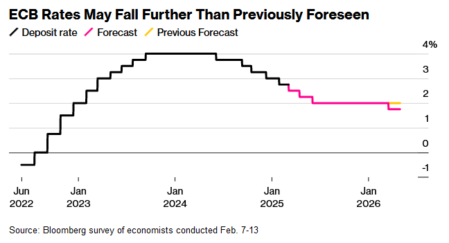 因此,为提振低迷的欧元区经济,欧洲央行可能会在通胀目标趋近实现之际进一步降息。