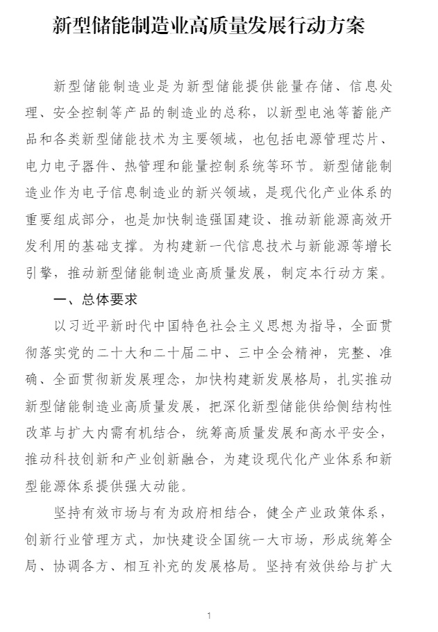 现将《新型储能制造业高质量发展行动方案》印发给你们,请结合实际认真抓好落实。