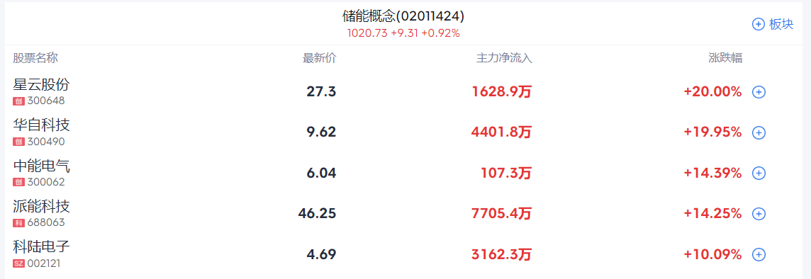 1、电力储能板块走强