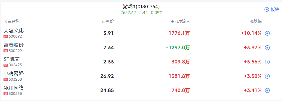 2、游戏板块逆势拉升