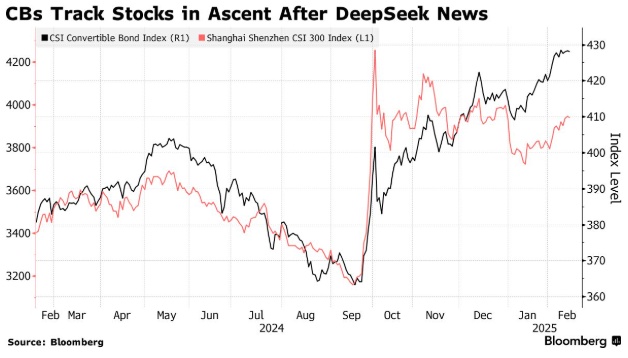 自中国自去年 9 月宣布一系列刺激经济增长措施以来,可转换债券一直处于上涨趋势。尽管可转换债券今年开局不温不火,预示着涨势将停滞,但中国初创公司 DeepSeek 的潜力在 1 月下旬引发了一场科技狂潮,并改变了中国人工智能押注的格局。
