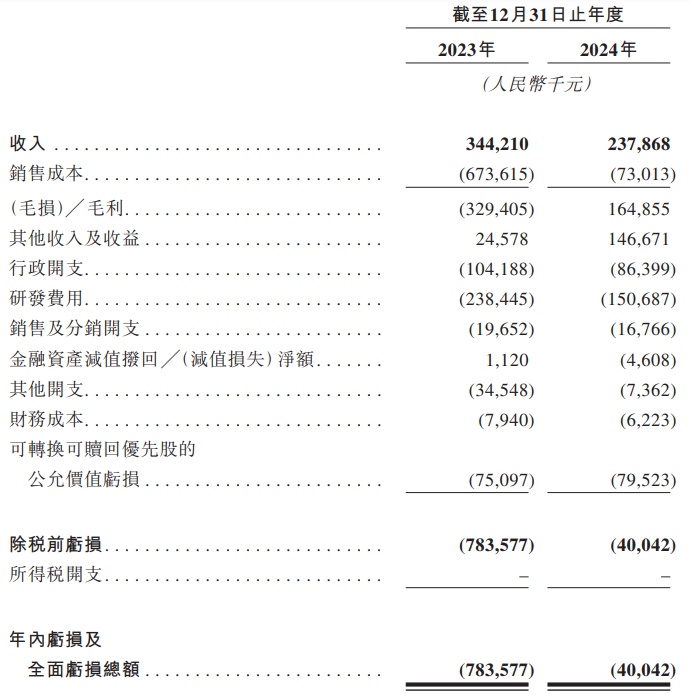财务方面,于2023年、2024年,真实生物收入分别约为3.44亿元、2.38亿元人民币;同期,年内亏损及全面亏损总额分别约为7.84亿元、4004.2万元人民币。
