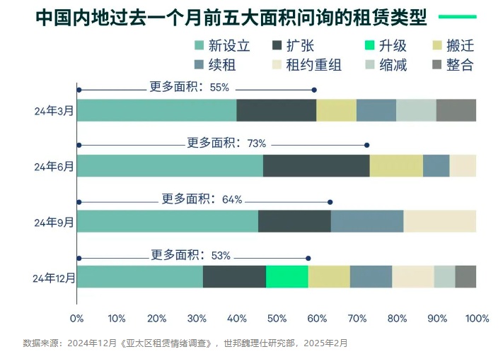 CBRE《2024年亚太区租赁情绪调查》,总体上零售品牌对中国内地门店布局抱持积极策略,但去年下半年后租约重组、缩减整合等优化诉求呈上升趋势。CBRE认为,这一方面是零售商因2024年销售增长不及预期而做出的降本增效举措,而另一方面则是全渠道生态下品牌对实体门店体验与坪效并重的必然选择。