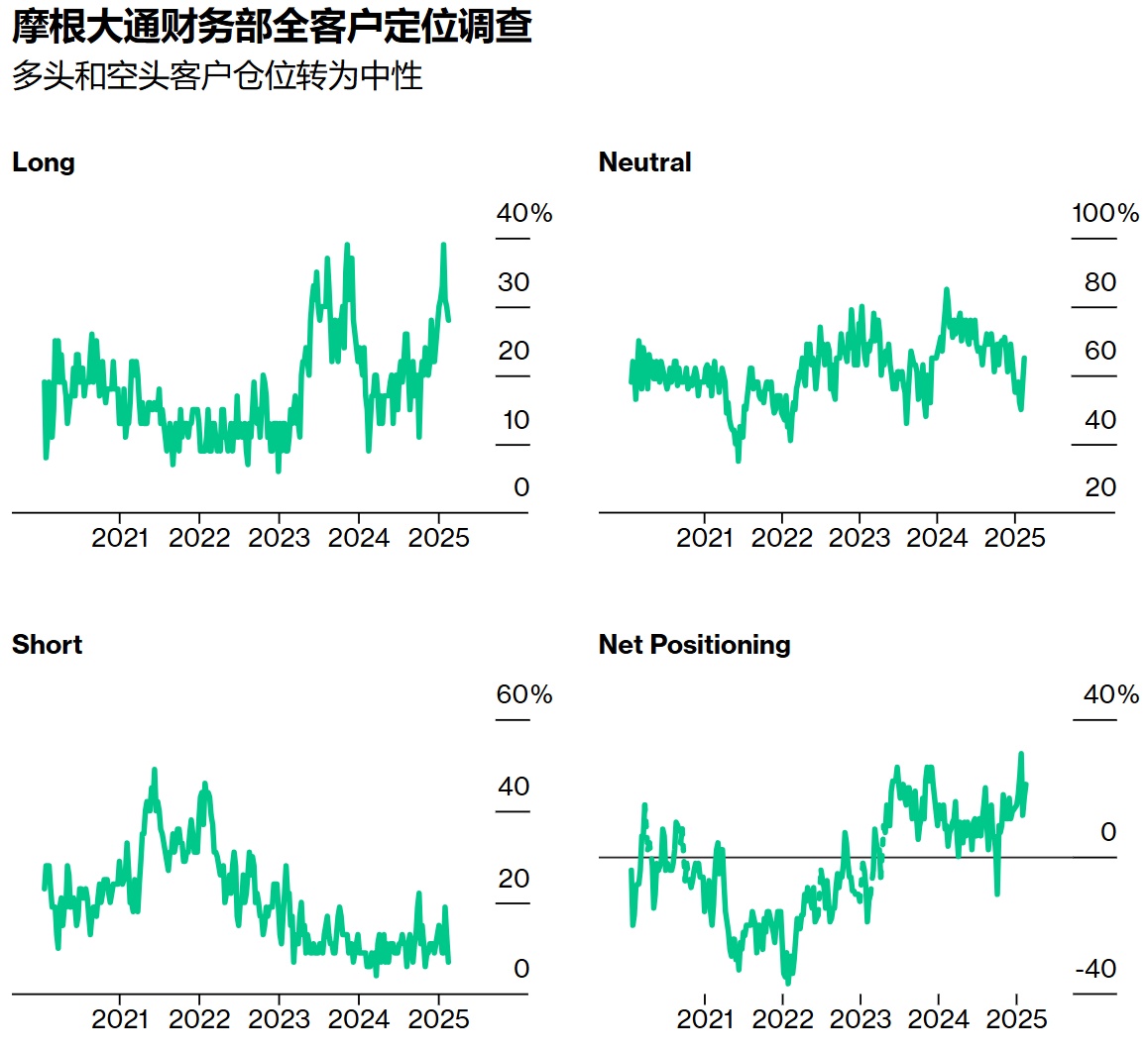 摩根大通周三的调查显示,摩根大通客户对美债的中性持仓达到今年最高水平。这一转变发生之际,美国贸易政策的波动使得拟议的关税对美国通胀轨迹的影响尚不明朗,这增加了交易员在市场押注上失误的风险。