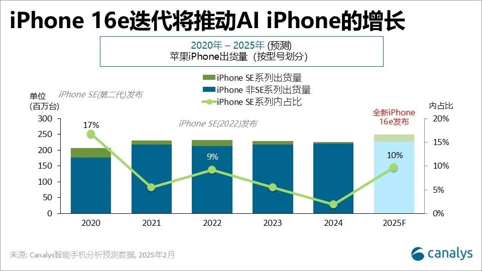 智通财经APP获悉,Canalys发文称,苹果(AAPL.US)于2025年2月19日推出全新入门级iPhone 16e,进一步扩展iPhone