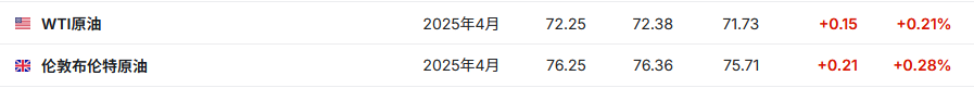 3. 截至发稿,WTI原油涨0.21%,报72.25美元/桶。布伦特原油涨0.28%,报76.25美元/桶。