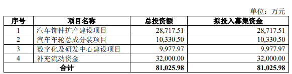 公司主要产品包括了汽车造型部件、汽车声学产品和车轮总成分装三部分。其中,汽车造型部件主要包括了格栅、饰条及字标等;汽车声学产品主要包括顶棚、地毯、隔音隔热垫、行李箱盖板及储物盒等;车轮总成分装是按照主机厂的要求,将轮胎、轮毂、胎压传感器等进行组装。