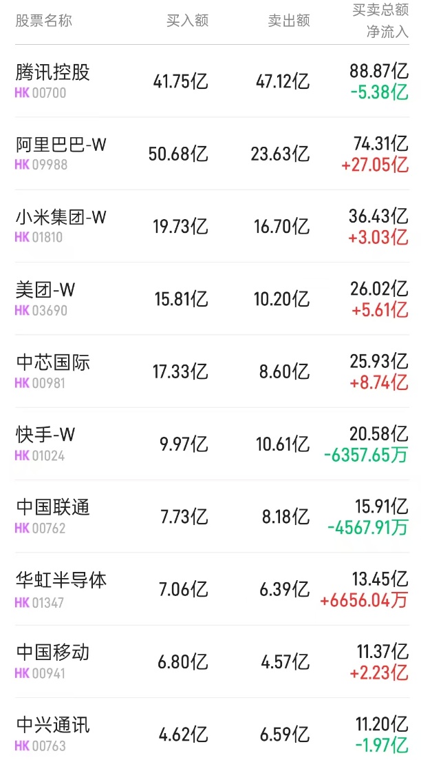 阿里巴巴-W(09988)获净买入62.54亿港元。消息面上,阿里巴巴发布第三财季业绩,期内营收2801.5亿元人民币,同比增长8%;净利润464.34亿元,同比增长333%。阿里巴巴集团CEO吴泳铭表示,未来三年在云和AI的基础设施投入预计将超越过去十年的总和。大和表示,集团的资本支出将高出同业,将助力未来数年赢得云端业务的市场份额,亦将继续推动其云端业务的重新评级。中银国际指出,阿里AI云将成为焦点,集团未来对AI云的投资,表明公司有信心在需求激增的情况下保持其在AI云领域的领先地位。